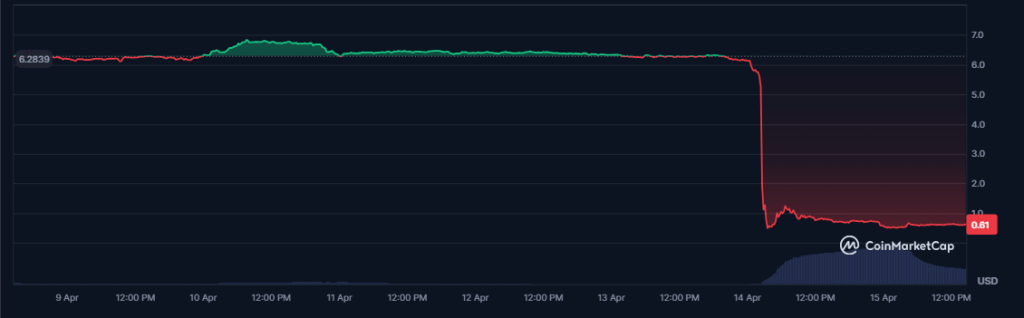 OM price has sustained a steep drop in the last week. Source: CoinMarketCap