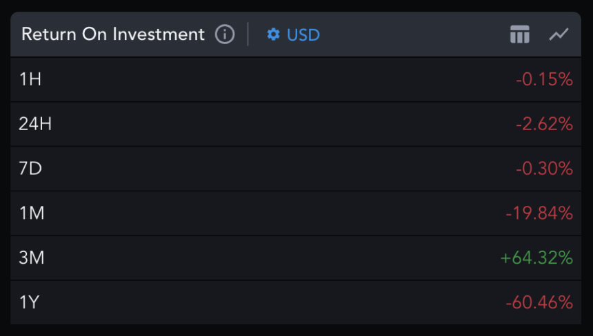 The ATOM price from the on-chain analysis looks more decent despite a fall of over 70%. ATOM produced a reasonable return on investment (ROI) of 64% over the past three months compared to other crypto assets that have struggled for the past months.