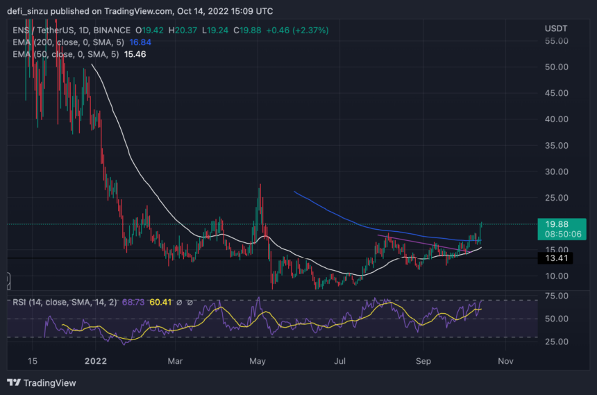 Despite the uncertainty that currently surrounds the cryptocurrency market, the price of Ethereum Name Service (ENS) has been one of the dark horses, rallying from $13 to $20. The crypto market suffered a new setback when the price of Bitcoin (BTC) fell from around $19,000 to $18,100 as the Consumer Price Index (CPI) indicated an increase in inflation, negatively affecting the price of BTC with altcoins affected but Ethereum Name Service (ENS) demonstrating incredible strength. (Data from Binance)