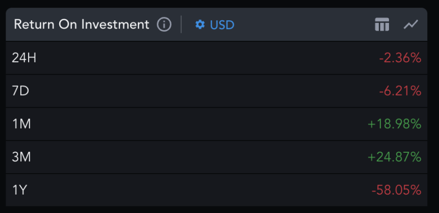 The XRP price from the on-chain analysis looks more decent despite a fall of over 50%. XRP produced a reasonable return on investment (ROI) of 24% over the past three months compared to other crypto assets.