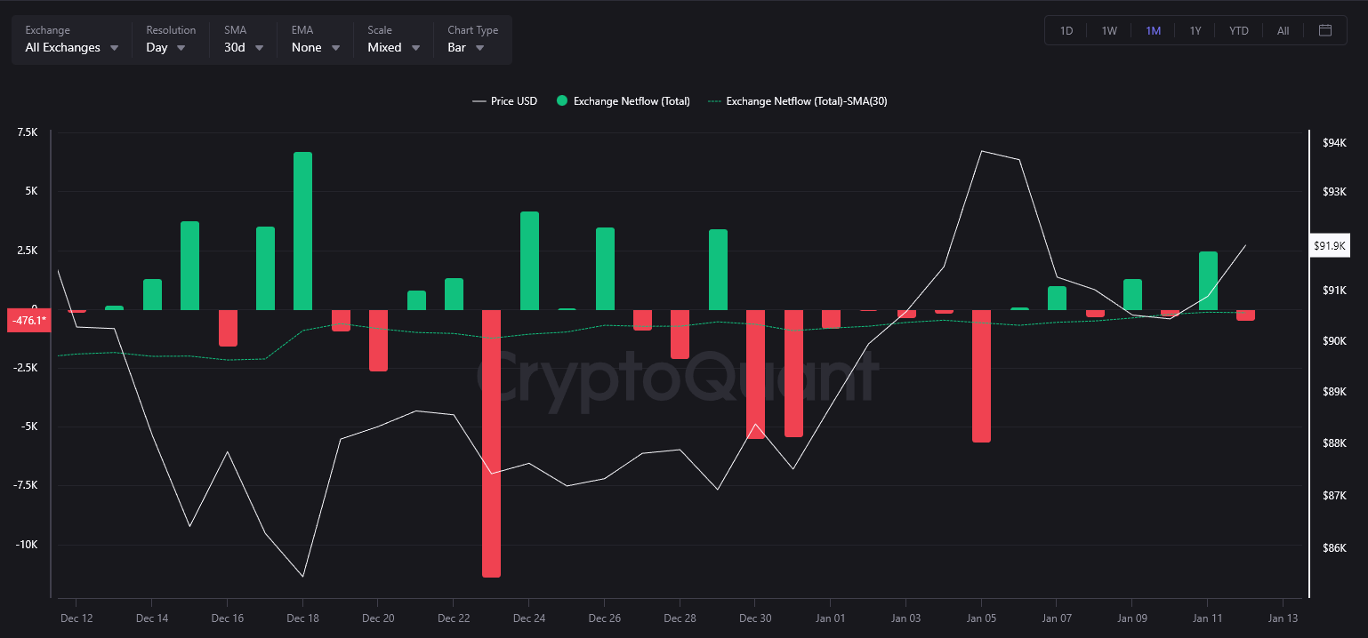 Bitcoin Total Exchange Netflow. Source: CryptoQuant