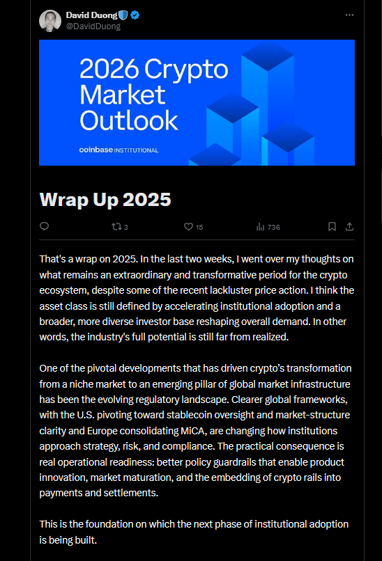 “We expect these forces to compound in 2026 as ETF approval timelines compress,” he said. According to Duong, last year laid important groundwork by giving more regulated paths for investors and by pushing crypto tools closer to normal finance.