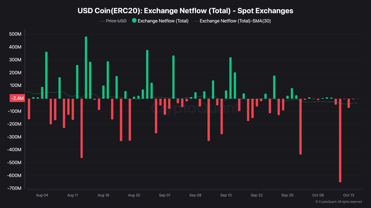 TeddyVision highlighted two distinct trends from August 1 to mid-October 2025. An analysis of the 30-day SMA of stablecoin net inflows to exchanges shows that capital used for actual asset purchases has decreased, while liquidity supporting leveraged derivatives like futures and perpetual contracts has increased.