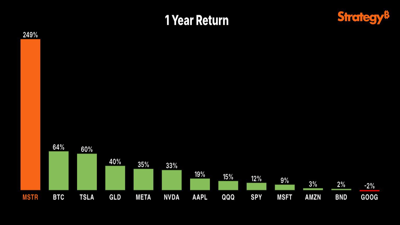 However, the price of BTC has been rising steadily, and Michael Saylor’s company has been growing alongside it. MSTR rose nearly 50% since its lows in March, and the stock is currently outperforming BTC and leading tech firms.