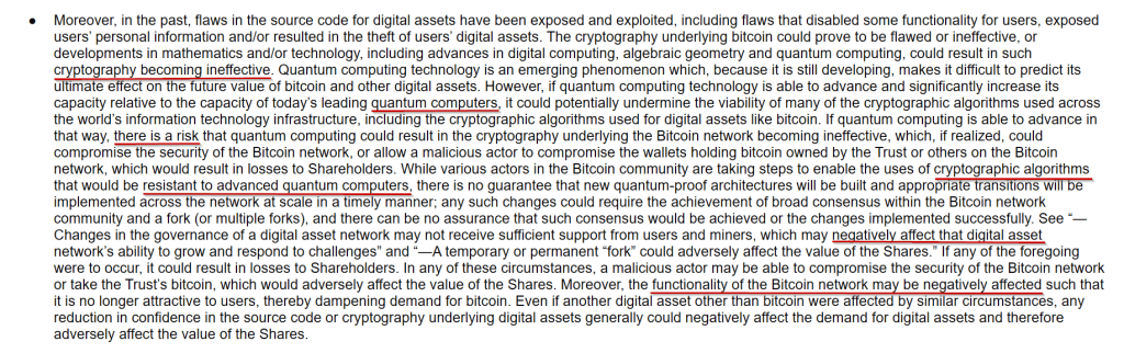 Company lawyers say that if quantum processors become strong enough, they could decrypt private keys and put wallet security in jeopardy. It’s a standard move in ETF filings to note every conceivable risk, even if it feels far-off.