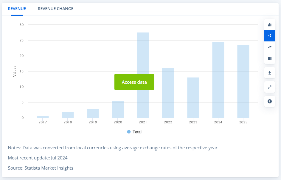 Jordan's revenue from crypto transactions from 2017 to 2024. Source: Statista