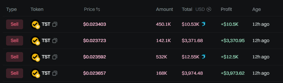 Gmgn data shows the investor dumped his entire TST stash within 12 hours, offloading assets worth around $30,400.