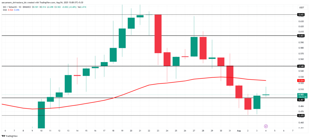 However, if investor sentiment remains uncertain and demand does not materialize, IMX could face continued selling pressure. In such a scenario, the price may fall below $0.497 and drop to $0.470 or lower. This would invalidate the bullish outlook, signaling further downside risks for the altcoin.