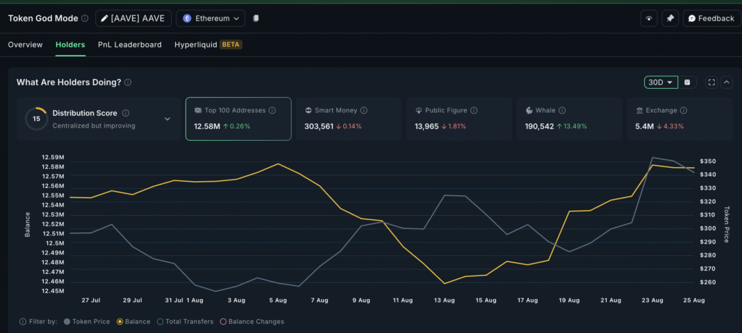Large wallets adding while exchange reserves shrink typically signal confidence from deep-pocketed players, which might explain why the WLFI-driven AAVE price dip was limited.