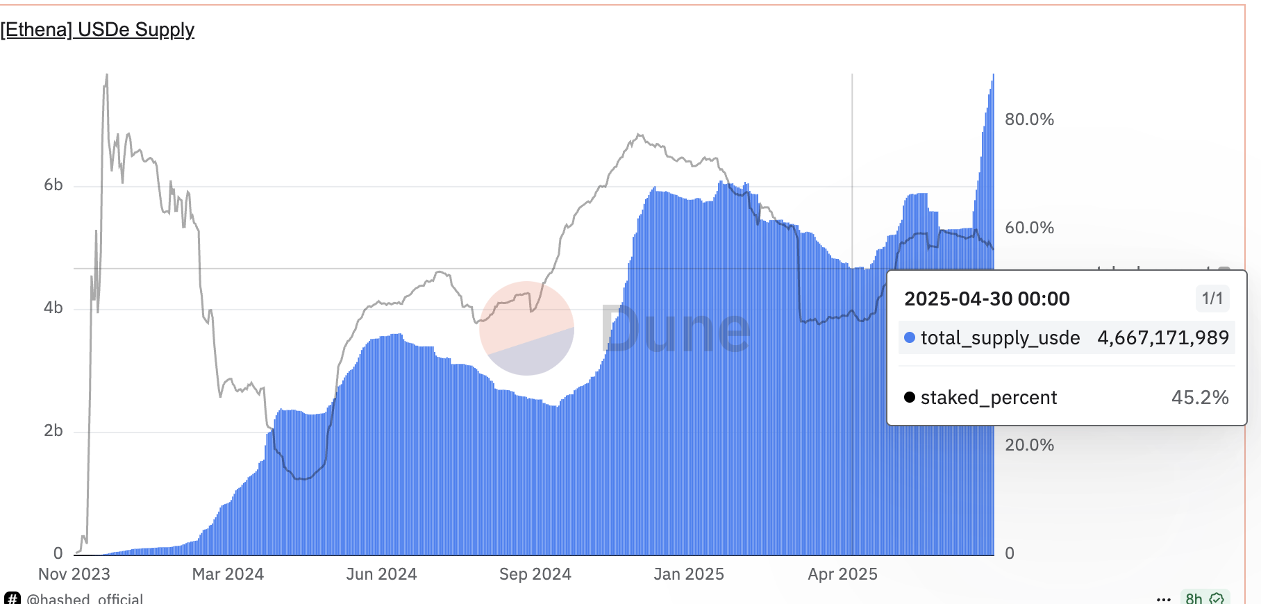 They let ETH holders deposit Ethereum or staked Ethereum (stETH) to mint USDe, a synthetic dollar asset that can be staked further for layered yields. As more traders look to amplify returns, the flow into USDe has accelerated sharply.