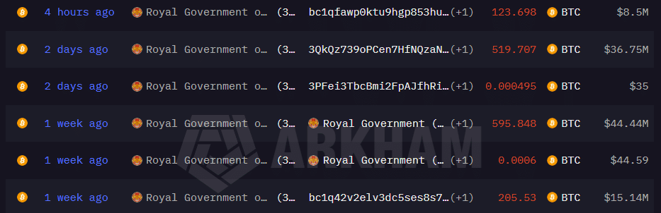 The Royal Government of Bhutan, which became one of the first sovereign Bitcoin miners by using surplus hydroelectric power, has moved 643 BTC worth over $45 million to external wallets over the past two days, according to Arkham Intel data.