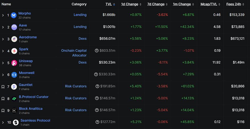Aerodrome is the third-largest protocol on the Base chain, behind Morpho and Aave, with a TVL (total value locked) of $656 million.