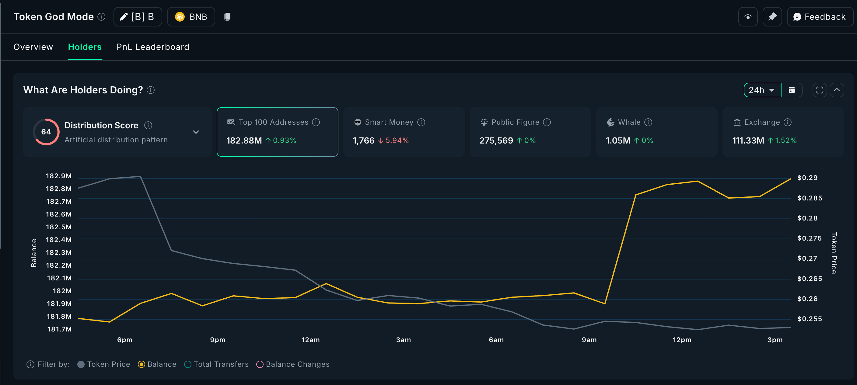 Over the past 24 hours, the top 100 addresses (mega whales) have increased their holdings by 0.93%, bringing their combined stash to 182.88 million B tokens. That’s an addition of roughly 1.69 million tokens, valued at about $425,000 at the current $0.253 price level. The steady inflow into whale wallets suggests growing confidence that BUILDon may be close to a trend reversal.