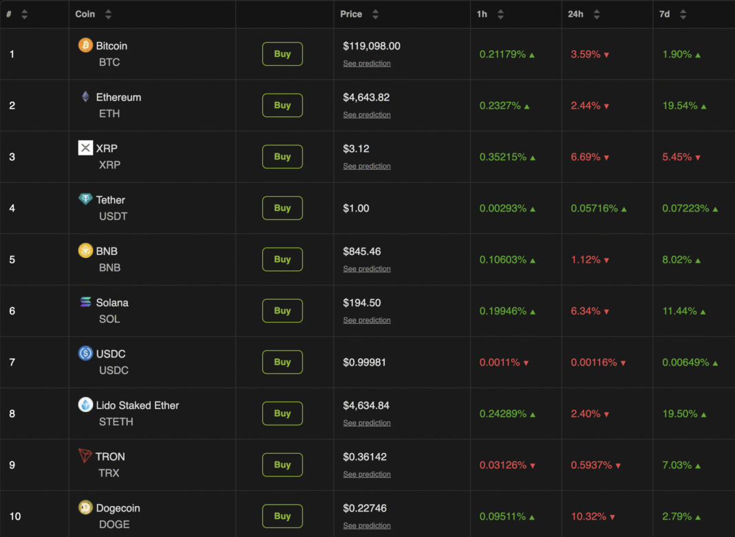 Bitcoin (BTC) slipped to $119,098 at press time, after hitting a new all-time high of over $123,700 yesterday.