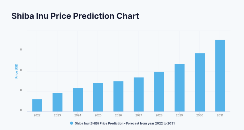 The website has a Shiba Inu average price prediction for 2025 of $0.00002620, an increase of 160% from the current price of $0.00001009. SHIB is expected to see marginal changes in price in the next three years, when measured against its explosive growth in the past.