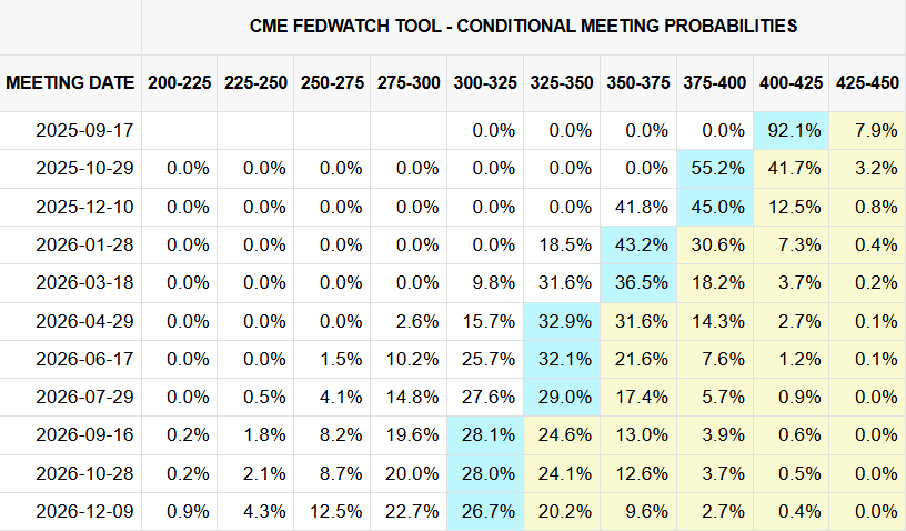 CME Group’s FedWatch Tool’s interest rate projections (as of August 18, 2025). Source: FedWatch