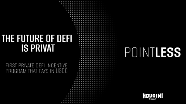 HoudiniSwap, a pioneer in private cross-chain swaps, has announced the launch of POINTLESS, the first private incentive program in DeFi. Unlike traditional rewards schemes that rely on points, governance tokens, or complex unlock schedules, POINTLESS directly rewards users with real USDC generated from aggregator revenue.