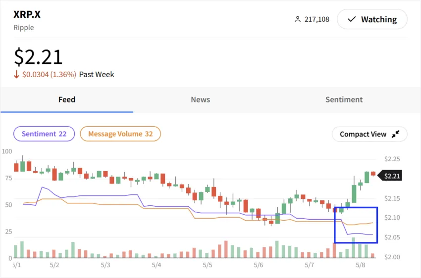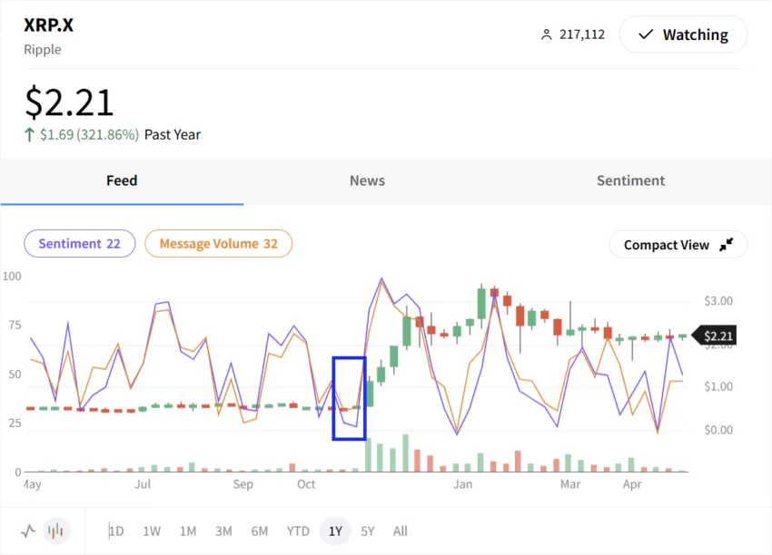 Stocktwits’ social sentiment data is another powerful tool when trying to buy XRP at the bottom. Stocktwits captures insights exclusively from traders and investors – no random chatter from general social media.