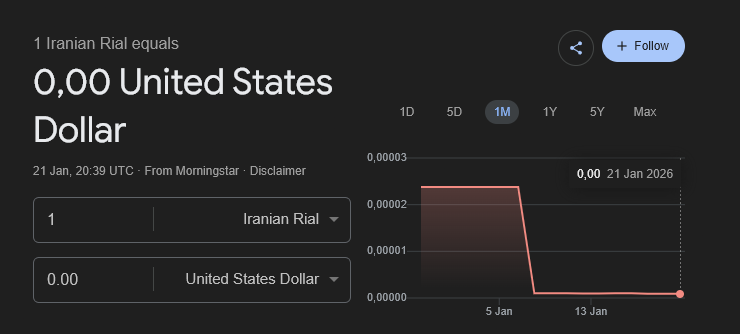 Although the rial did not technically fall to “zero,” its rapid depreciation rendered it nearly unusable for international trade and savings.