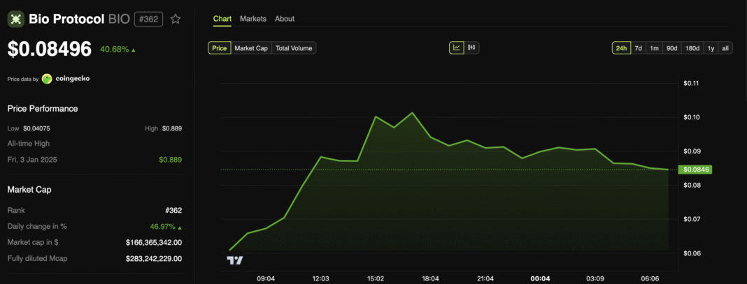 BIO, the native utility and governance token of the Bio Protocol, surged to a five-month high yesterday amid significant network developments.