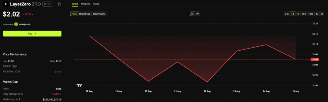 Data from BeInCrypto shows ZRO climbed 4.7% to $2.17, while STG rose 4.9% to $0.19 immediately after the announcement. However, those gains later reversed, returning both assets to prior levels as of press time.