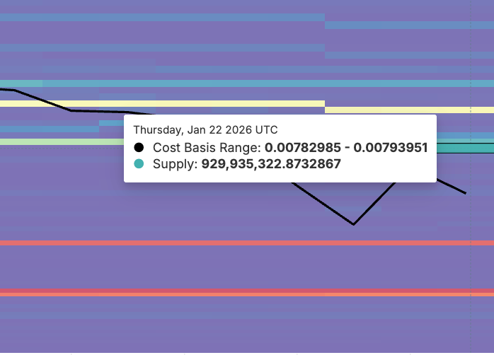 A dense cluster of holders accumulated XCN near $0.0079, and when the price approached this zone, sellers stepped in to break even. This explains why the rebound stalled despite improving momentum. The RSI divergence limited downside, but the cost-basis wall capped upside.