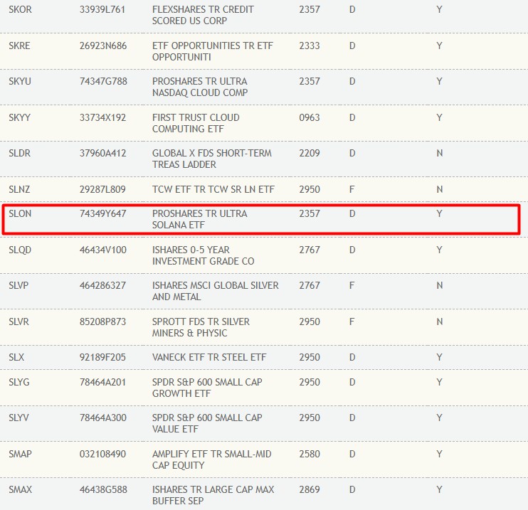 Currently, only the ProShares Ultra Solana ETF appears on the DTCC listing.
