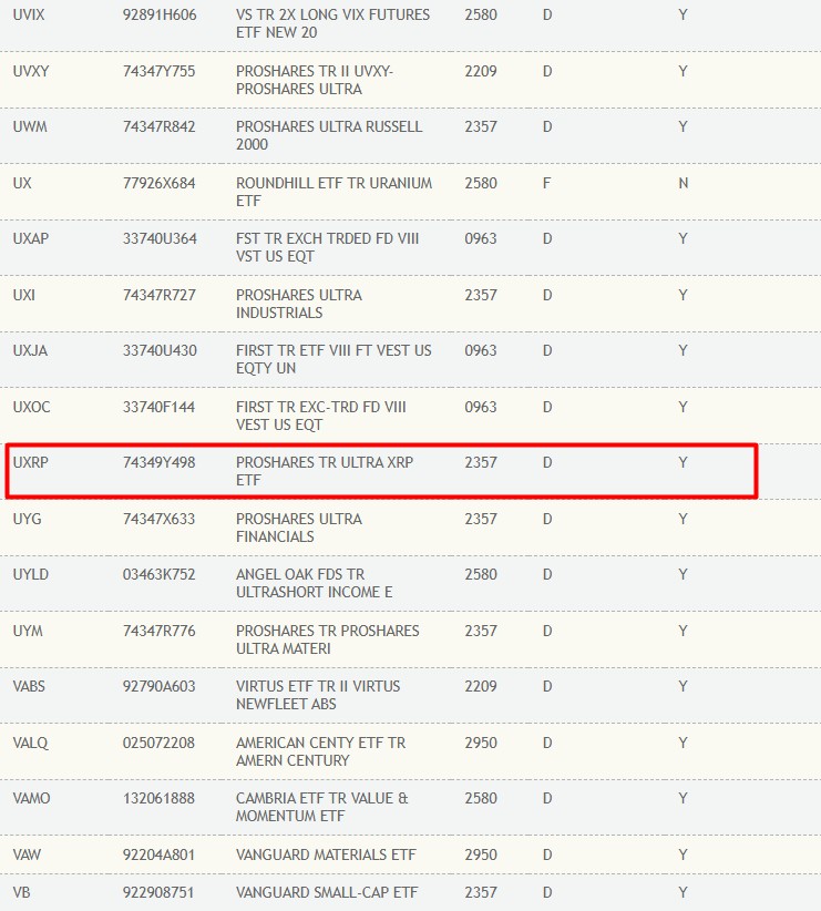 ProShares’ Ultra XRP ETF has been listed on the Depository Trust and Clearing Corporation (DTCC) under the ticker UXRP.