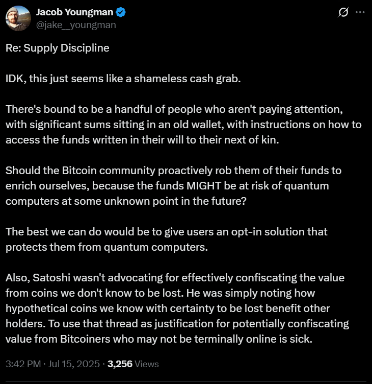 The motivation is clear. If a quantum attacker gains access to exposed public keys, they could steal coins covertly and undermine trust in the network.