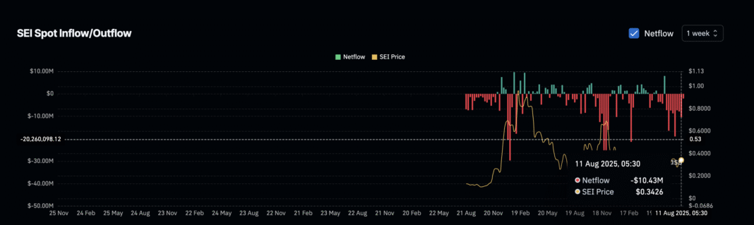 SEI has been consistently pulled off exchanges for eight consecutive weeks. Last week alone, SEI saw net outflows of $10.43 million, marking the second-largest weekly total since July’s peak. These continuous outflows reflect rising buying pressure and long-term conviction.