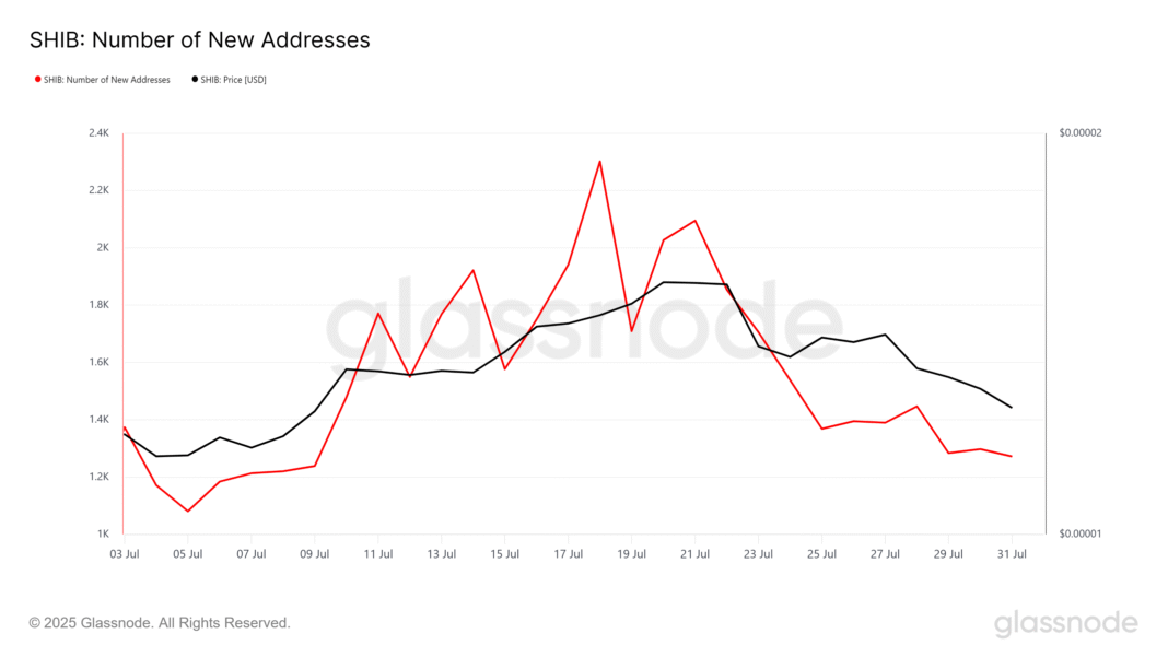 At present, Shiba Inu’s price is sitting at $0.00001210, down 21% over the last 10 days. The recent drop has been primarily driven by the sharp decline in new investors entering the market.