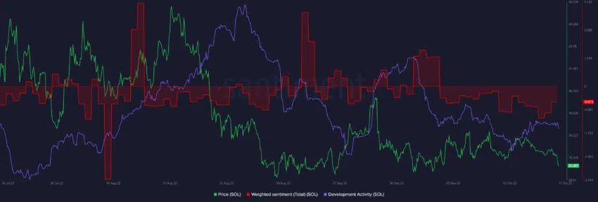 In addition to that, SOL’s social media mentions have declined as weighted sentiment plunged into the negative territory.