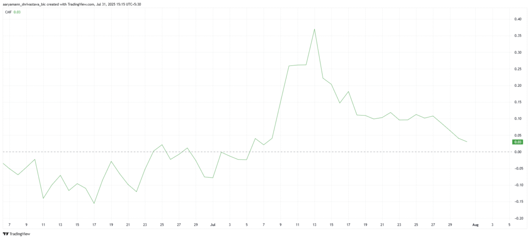 Rising outflows indicate that traders are less confident in Stellar’s short-term prospects, which is impacting the price action. Although the CMF is still in the positive zone, it is dangerously close to crossing into the negative zone.