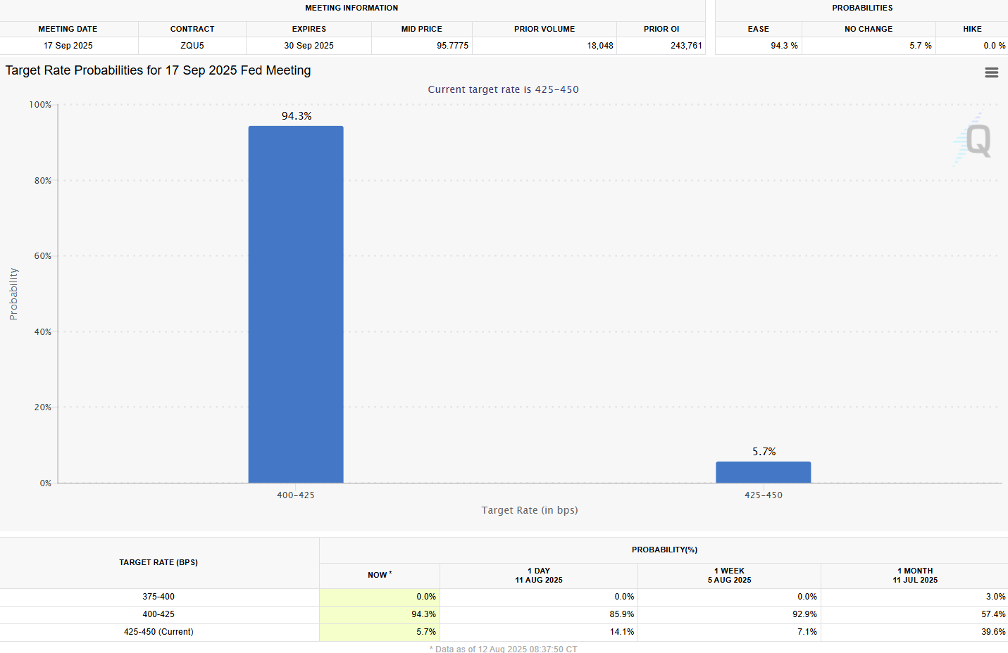 Still, market participants appear more convinced of an imminent rate cut following the release of inflation data. CME’s FedWatch tool shows the probability of a September move rising to 94% from about 86% yesterday. Traders overwhelmingly expect a quarter-point cut.