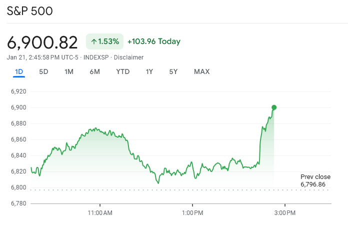 Bitcoin and global markets rebounded sharply after US President Donald Trump said he would not proceed with tariffs linked to Greenland. The announcement erased trade war fears that had rattled investors earlier in the day.