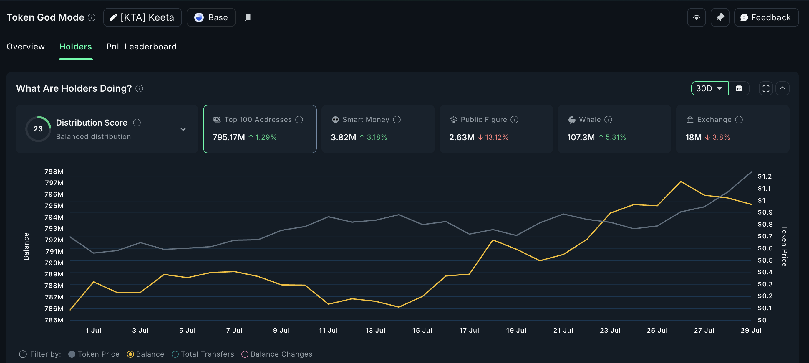 The price has surged by +44.6% in the past 7 days, suggesting that some smart capital is already positioning ahead of September. With a balanced distribution score of 23, the ownership spread is healthier, which often supports price stability during volatile periods.